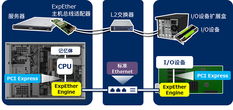 NEC独有的技术,能在不改变现有的硬件、软件(OS、驱动程序)的基础上,使 PCI Express总线在通用以太网上得以扩展。