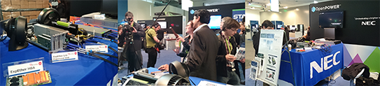 NEC had a session for a resource-disaggregated platform including Power8 and GPUs for diverse cloud computing server. In NEC booth, NVIDIA GPU K80 was extended by 40G ExpEther with Power server and the CUDA N-Body benchmark on the K80 showed few performance degradation.